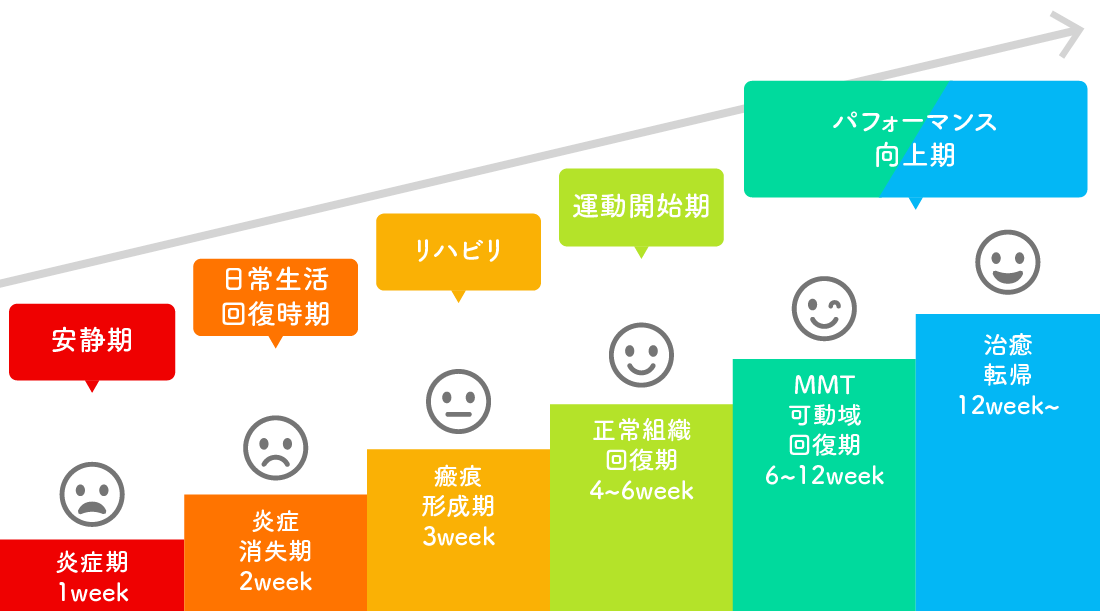 炎症症状が落ち着いたケガに関しては温熱を加え、組織の代謝と回復を促します。